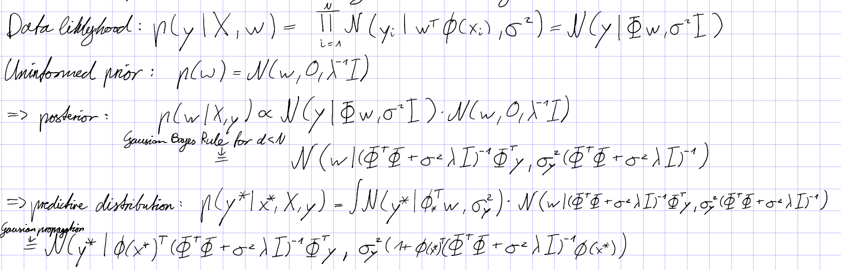 Competing the square is the reverse application of the binomial formula. In our context, we do this to bring the inside of an exponential to match the form of the Gaussian distribution. This allows us to read the mean and variance parameters from the term.